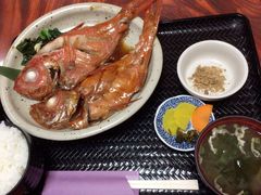 金目鯛の煮付け定食。ふわっとしていて味付けもちょうど良く美味しかったです。ご飯がすすみます。