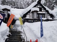雪を纏った店舗は、なかなかの風情、店内テーブルも自然木の凝ったつくり。げそ天いたそばを注文(税込み930円)。麺は細打ち、食感はのど越しを楽しむタイプか、1.5人前ほどの量、つけ汁とのバランスよし。げそ天はカラりと揚った衣を纏い、太足で食べ応えあり。箸休めの湯豆腐、漬物付き、そば湯割で〆、美味しく満腹。着膳を待つ間、お茶請けにずんだ饅頭が供される、和菓子も有名らしい。