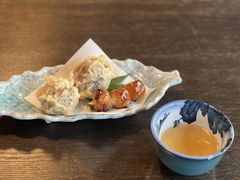 みたらしなど食べました。酷暑でしたがエアコンなしで縁側で池の鯉、風鈴 風など風情がありました。梅干しの天ぷらは好みが分かれました。