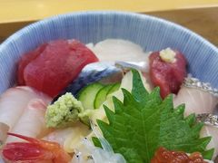 石巻駅から南東へ徒歩約7分、震災後10月から千石町に移転し、店を構えている《すし寳来》さんになります。ご主人で3代目になり80年以上も、親しみ続けられている人気の老舗です。美味しい三陸(金華山沖)の幸を堪能することが出来ます。昼時のランチタイムに注文した【金華丼】は、彩り豊かな旬の新鮮な魚介を贅沢に使って丁寧な仕事のされた、お薦めの逸品です!