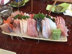 よく金沢行くと行ってますが、二人だと刺身盛り合わせは4分の1にしてもらってます。三人なら2分の1でも行けると思いますが13〜14種類ぐらいの切り身がのってるのでそれだけでも満足です。カキフライとかは半分とかできないですが二人以上ならぜひ一度食べてみてください。