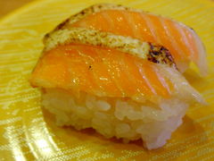 『焼きサーモン』のにぎりや『寿司屋のたたき』の軍艦を食べましたが美味しかったです。