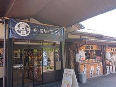 私たちは東海環状自動車道・美濃加茂ICで降り、国道41号線で下呂温泉へ向かいました。昼食をとるために、ここに寄りました。高速道路を下りた後、料金ゲートに至る途中にあります。上下線共用の大きくて立派なSAです。