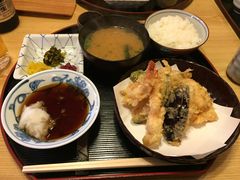 天丼です。画面から外れましたが味噌汁も付いてます。ビールは別料金です。