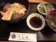 注文した「すし定食」には、中巻きの鉄火3切、押しや握りが6カン、小鉢と赤だし付き。