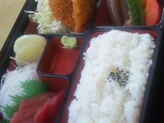 日替りランチ【本日のお弁当】は、刺身、串カツ2本、煮物、沢庵、ご飯、味噌汁の内容で¥740円とリーズナブル!とても美味しくいただける、お薦めの逸品です!昼時は、ほとんどの方が頼んでいます!他にも「アジフライ、コロッケ、天ぷら」などの定食も定番。さば味噌、さんま開きや刺身定食、レバニラ炒め、カレーライスなども格安で楽しめる、本当は内緒にしていたい名店!栃木名物『いもフライ』も持帰りOKです。
