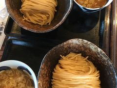 入店は2時過ぎでしたが、土曜日とあってとても賑わってましたぁ!我が愛妻は「つけ麺並盛り」を、じじいは「つけ麺大盛り」を各「太麺・ぬめり落とし」で注文して、サイドメニューで「焼き餃子」を一皿付けました。焼き餃子は、柚子胡椒が添えられていたので、通常のラー油味と柚子胡椒の、二種類の味を楽しめましたわぁ!このお店のチェーンは、どこで食べても、何時も美味しく、つけ麺をいただけるので気に入っています!また、何処かのお店に、寄らせて貰いますわぁ!美味かったなぁ〜ぁ!お勧め出来ます!