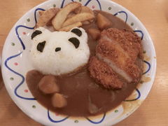 スマイルキッチンでパンダカツカレー。サラダが付いていますが、昨日の夕食と今日の朝食をたくさん食べたのでご飯を残す・・。