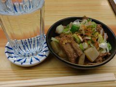 名物のもつ煮込みと日本酒熱燗を頂きました。
