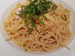 タコと大葉のペペロンチーノ、エビたっぷりのジェノベーゼピザを頂きました。