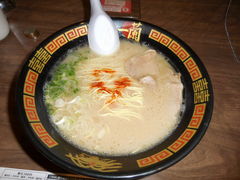 福岡の有名なラーメンチェーン店です。このお店は国道3号線沿いにあります。ここはおそらく私語厳禁だろうと思って、子供にもそう言い聞かせてはいったのですが、家族用のカウンターもあってしゃべることもできましたので拍子抜けでした。味はまずまずで、やっぱり博多のとんこつラーメンの代表格でしょうね。