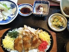 寿都で気になって、11時半に入店しました。次から次へとお客さんが入ってきます。海鮮丼も気になりましたが、ここは寿都おすすめのホッケ飯。熱々の鉄板ではこばれてきますが、ホッケはふわふわで美味しくて、ヒラメとイカのお刺身ついてて、それも美味しい。