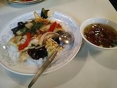 国分町通り、萬寿山の向かいにあり、店の形が独特なので、テーブルの配置に密集感があります。お店では、甕出しの紹興酒が味わえます。一人で調理しているので出てくるのはゆっくりです。味噌ラーメンとタンメンが人気のようでしたが、今回は、あんかけ飯(830円)にしてみました。