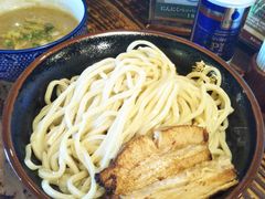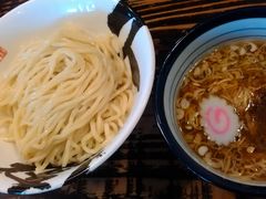 つけ麺メインのお店、ラーメンもおいし。つけ麺は、魚介効いた付け汁に自家製太麺、ザク切りのチャーシュー、メンマも合います。中華そばは、しっかり味の醤油スープ、中太麺、厚切りチャーシュー、メンマのトッピング、こちらもうまい。つけ麺、中華そば、ともに大盛無料、特盛200円。人気店につきお待ち必須ですが、駐車誘導、接客丁寧で好感度よし。