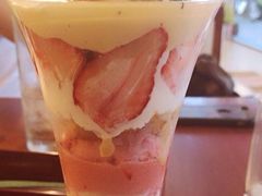 期間限定のいちごのパフェを注文しました。いちごたっぷりで濃厚で食べ応えがあって、すごく美味しかったです。