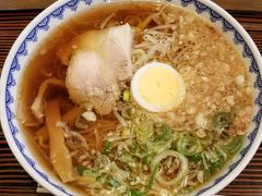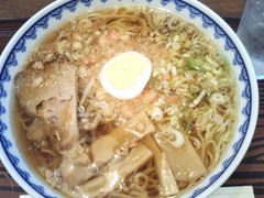 和を感じさせるスープに細麺が泳ぎ、チャーシュー、メンマ、ゆで卵スライス、刻みネギに揚げ玉がトッピング。さっぱりいただける、お蕎麦屋さんの中華そば。大判、甘味感じるコロッケでも有名なお店です。
