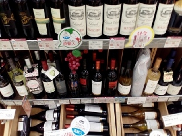 店内は広めで生鮮食品からワインを中心としたお酒まで