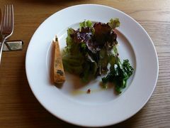 前菜はスペインオムレツ、スモークサーモン、茄子