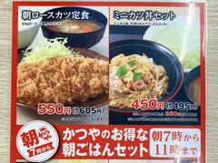 妻と2人で少し早めのランチで訪問しました!今回はお得な朝ごはんセットから「朝ロースカツ定食(550円)」を注文!サクサクの衣に柔らかいロースカツと具がいっぱいの豚汁がとても美味しかったです♪ 通常より少し量が少ないですが、コスパが良くて満足でした(^o^)