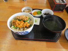 時期的に少し早いとは思っていましたが、あまり他所では食べない「ガンガゼ」と旬少し前の「ムラサキウニ」のミックスのうに丼を食べました。個人的には、やはりムラサキウニの方が味も色も上だと思いました。ウニや海鮮丼目当てのお客が平日でもかなり多くてさすがだと思いました。