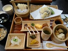 一説には聖徳太子が建立されたといわれている、とても古いお寺だそうです。竹膳料理が有名とのことで、おさしみやてんぷらや、たけのこご飯などなど、とてもおいしくいただきました。お寺ということで、お座敷かなと思っていましたが、お座敷にテーブルと椅子が並べられていて、足が疲れることもなくお食事を楽しむことができました。お料理のコースも数種類あったので、豪華にもリーズナブルにも楽しめると思います。
