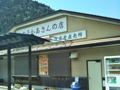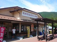 静岡県・天城にある「竹の子かあさん」の店頭には、「今日も元気だ 竹の子かあさん」。素朴だけれど、気持ちの詰まった天城のグルメが購入出来ます。