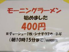 朝10時15分までのモーニングラーメン400円(カタメン)を注文。