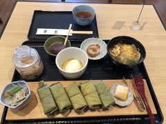 法隆寺参道の手前にあります。お持ち帰りもありますが、店内で奈良ランチ(1410円)をいただきました。柿の葉すし5貫ににゅう麺・温泉卵・小鉢にデザートもつきます。ボリュームたっぷりで美味しかったです。