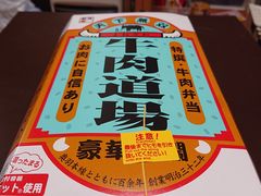 加熱式牛肉道場は、弁当箱に付いたひもを引っ張って数分待つとホカホカの弁当になります。甘辛に味付けされた牛肉煮とそぼろがとてもおいしかったです。