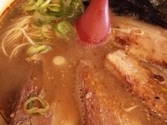 濃厚でこってりなとんこつラーメンです。チャーシューが分厚くて食べ応えがあります。細麺でスープとの相性抜群です。