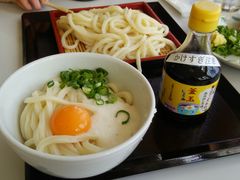意外なことに香川で食べたうどんの中でも、ここの「みかん卵の釜玉うどん」が一番おいしかったです!みかん卵はもちろんのこと、こしのある麺、販売もしている釜玉うどん専用醤油、おいしいです。