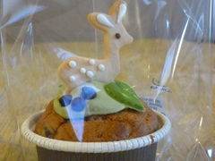 かわいいシカがのっているマフィンを買いました。シカの色をどれにしようかなと悩んで迷う時間も楽しかったです。シカを壊さないように注意しながら持って帰りました。