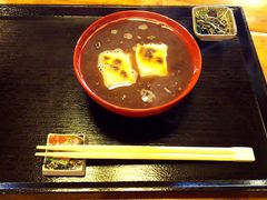 地下鉄名城線東別院駅から歩いて5分です。外装・内装共に昔ながらの甘味処で、ほっと一息つけます。冬でもかき氷のメニューがあります。ぜんざいはお餅か白玉か選べて税込690円でした。厨房の奥から、10歳の柴犬・くるみちゃんがたまに顔を見せてくれます。