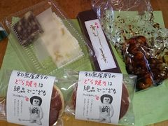 菓子折り的な商品はありませんが、ガラスケースに手作りの多種多様な和菓子などが沢山陳列され、一日に1000本以上売れる日もある 平らに潰れたような形が特徴の『みたらしだんご』など、全て大衆的で親しみやすい素朴なお味で!田舎のぬくもりを感じられるようなおやつが並んでいます!