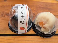 妻が大好きな「柚もなか」を購入。白浜に来ればあちこちで「柚もなか」が売られていますが、ここの「柚もなか」は他とは違います!!と同時に噂の「みかん大福」も頂いた。