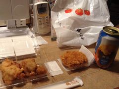 唐揚げもテイクアウトすることができる。今回は夕食用に醤油唐揚げと、塩唐揚げを1個づつ