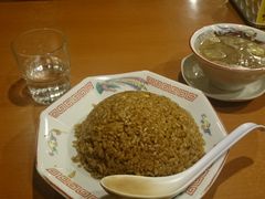 高田馬場の早稲田松竹に向かい辺りにある秋田のラーメン店で結構賑わっています。見た目かなり黒いスープが特徴のラーメンですが、ヤキメシもラーメンのスープをそのまま使っているのかと思えるほど黒っぽい色をしています。あまり具が入っていないシンプルなヤキメシですが何となくコクがある味でくせになります。 詳細情報をみる - 行った時期:2018年1月