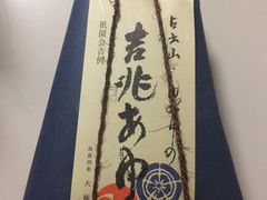 祇園祭の占出山で販売される吉兆あゆ。この大極殿さんの若あゆが、祇園祭の時だけ販売される和菓子です。