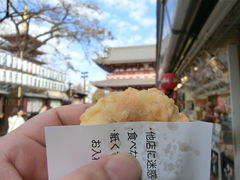 浅草寺近くのあげまんじゅうのお店で種類も多かったです。中にあんこがはいって揚げたてが食べられて美味しかったです。