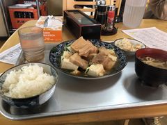 初めて食べる料理に興味津々ですが、味が濃くて水分が少ない島豆腐は、食堂の隣で毎朝作られる自家製とのこと。出汁は野菜でしょうか、とても優しい味がしますね。これに煮込んだ豚肉と刻みニラがトッピングされています。素朴な味がとても美味しいのですが、その量たるや相当なもので豆腐は2丁くらい入っていると思われます。これにご飯とミニ沖縄そば、おからまでが付いてくるのですから、食後には「今日の夕食は軽めでいいや」と思うほど。しかしながらその美味しさは、決して忘れられない旅の思い出になりました。詳細情報をみる