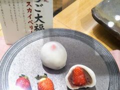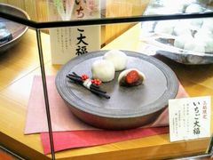 「日本橋三越本店」さんにある『榮太樓總本鋪 日本橋三越本店』さんでは、三越さん限定商品として、「いちご大福」が販売されています。ほんのり甘酸っぱいいちごが入った大福です。