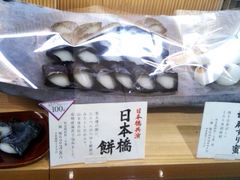 日本橋三越本店にある「榮太樓總本鋪 日本橋三越本店」では、日本橋にある老舗「にんべん」&老舗「山本海苔店」とのコラボ商品「日本橋共演 日本橋餅」が販売されています。老舗3店舗の共演です。