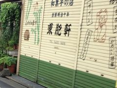 招き猫にちなんだサブレや最中などの商品が有名な老舗の和菓子屋です。シャッターも招き猫が描かれていて、ネコ好きにはたまらない!