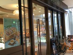 南千住にあるメゾンスヴニールです。店の手前からも分かる美味しそうな洋菓子がずらりとあります。おしゃれなお店です。