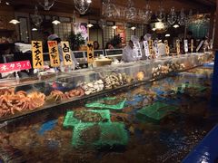 店内やお店の外の生け簀には新鮮な魚介類がたくさん。夜景をみたあとに訪問したので店内はとても混雑していたのとイカの活き造りはもう売り切れていたのが残念でした。蟹など色々と注文していただきましたがどれも新鮮で美味しかったです。また季節を変えても行きたいお店です。