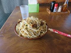 お肉ともやしががっつりのった沖縄ソバ。とても美味しかったしお腹いっぱいになりました。ただ、閉店時間が早いのでそれだけは注意してください。駐車場は店前にあるので安心です。