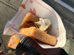 豊川稲荷の門前にある行列店です。小さなトンカツが油揚げでサンドされているのですが、意外にイケました。また、わさびいなりも人気のようなので、家に持ち帰りました。