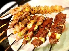 かしら串、やきとん、ねぎま、つくね、なす、みそだれで食べるやきとり最高です。