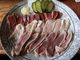 頼んだのは鶏刺し2人前と、豚バラ1人前。プラス白ご飯(大)ととり飯(小)を。