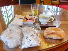 ベーカリーで購入したパンを宿泊者専用施設で食べました